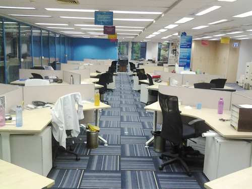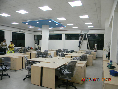 | Construction of office Interiors inside the factory, with 45 workstations, meeting rooms, conference room and services.