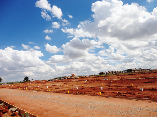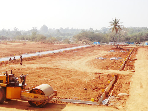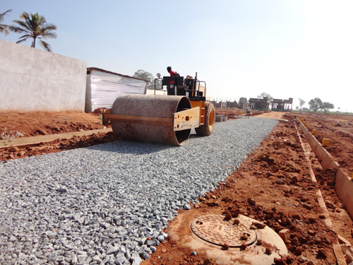 Construction of Sites & Services scheme for Karnataka Housing Board at Kakaramanahalli, Block - 4, Bidadi, Ramanagar, The area encompassing of 96.37 acres with sites approximately 1300 Nos, Parks and CA areas, Ponds and water bodies are nearing completion, Having rainwater recharging pits in the storm water drains at frequent distance.